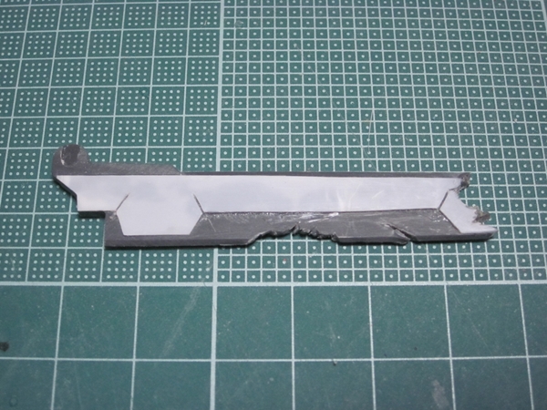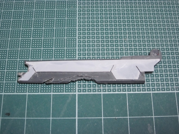 GNソードはかなり厚みがあったので、削りこんだ後にプラバンを貼り付けました。